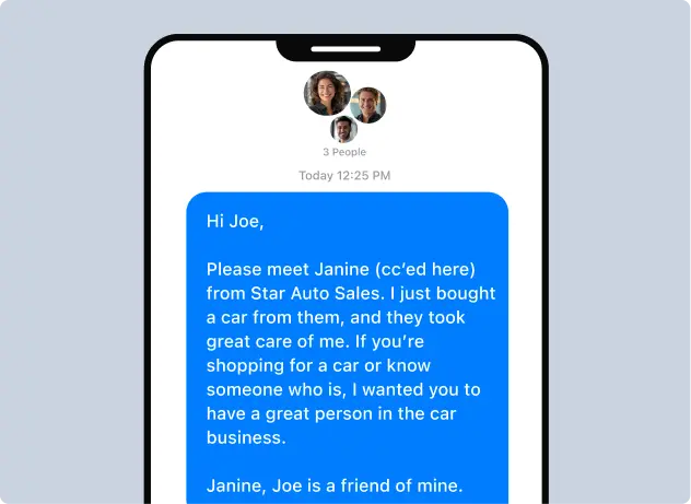 Be the reason your friends have someone they trust in the car business. One introduction can change their whole car-buying experience. Get rewarded for helping.